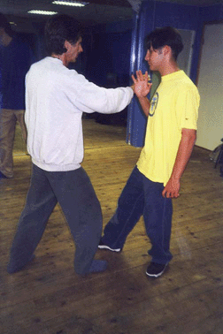 Students Sharif (right) and Per doing push hands exercise.