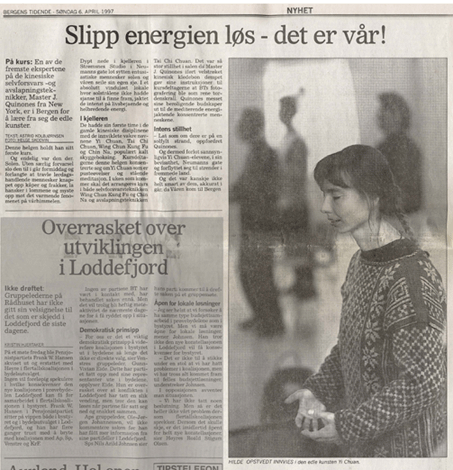 On April of 1997, Master Quinones and his propagation of Yi Chuan was featured in a local newspaper in Bergen, Norway. The picture shown above is a student, Hilde Opstvedt, practicing a Yi Chuan posture in one of the seminars.